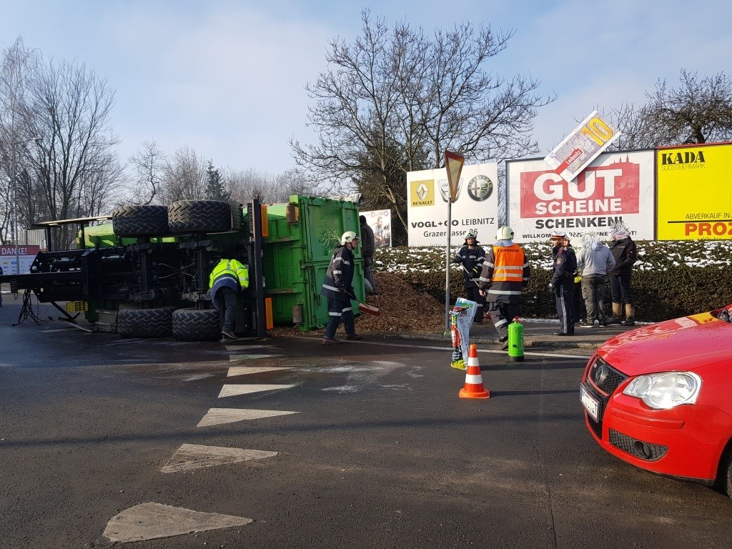 Verkehrsunfall mit Hackschnitzelanhänger