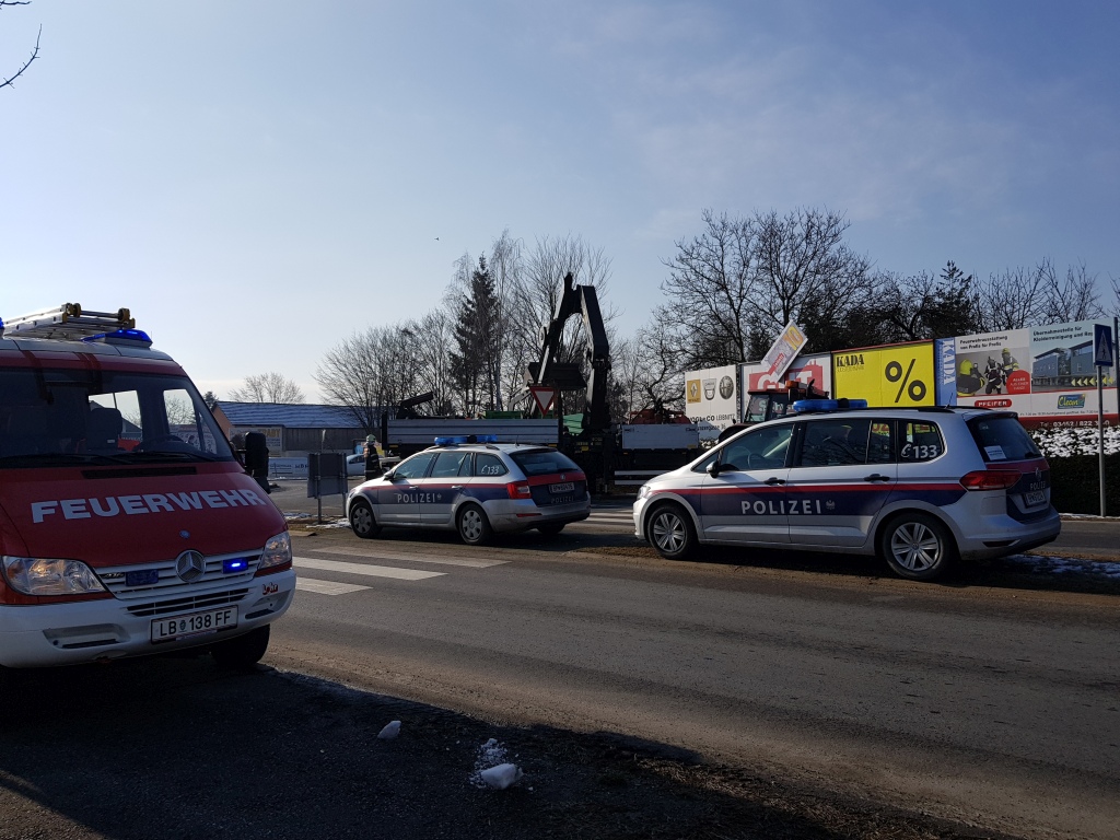 Verkehrsunfall mit Hackschnitzelanhänger